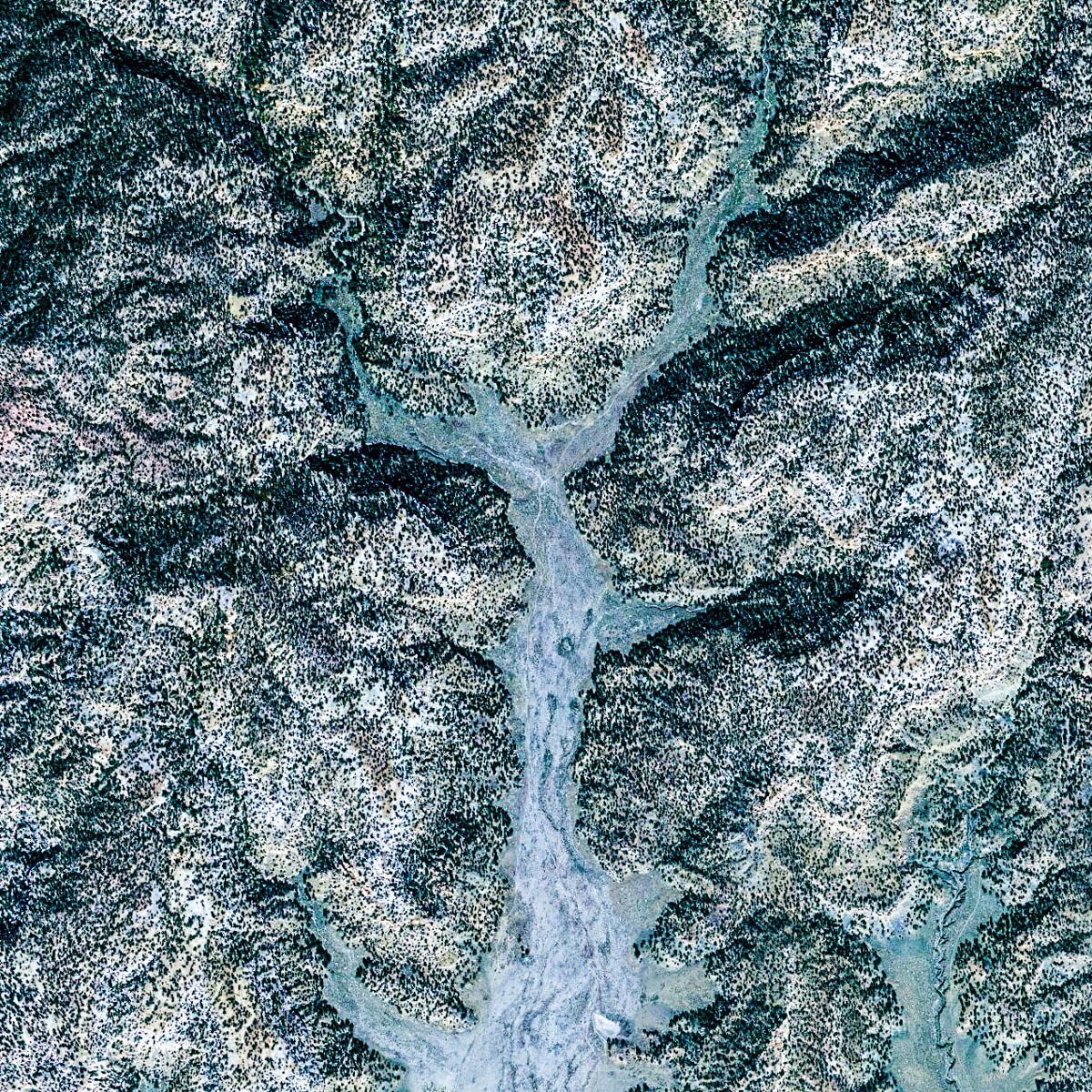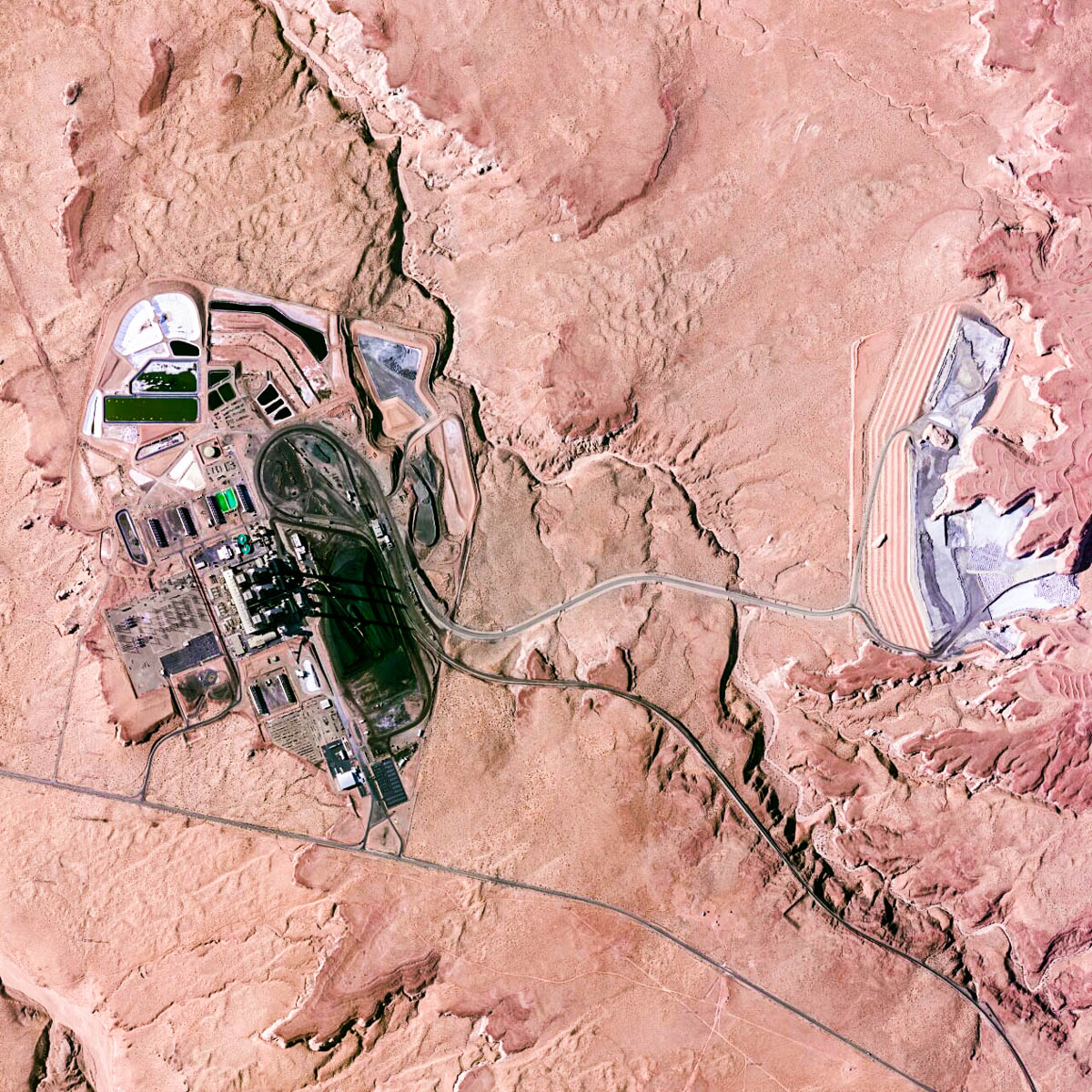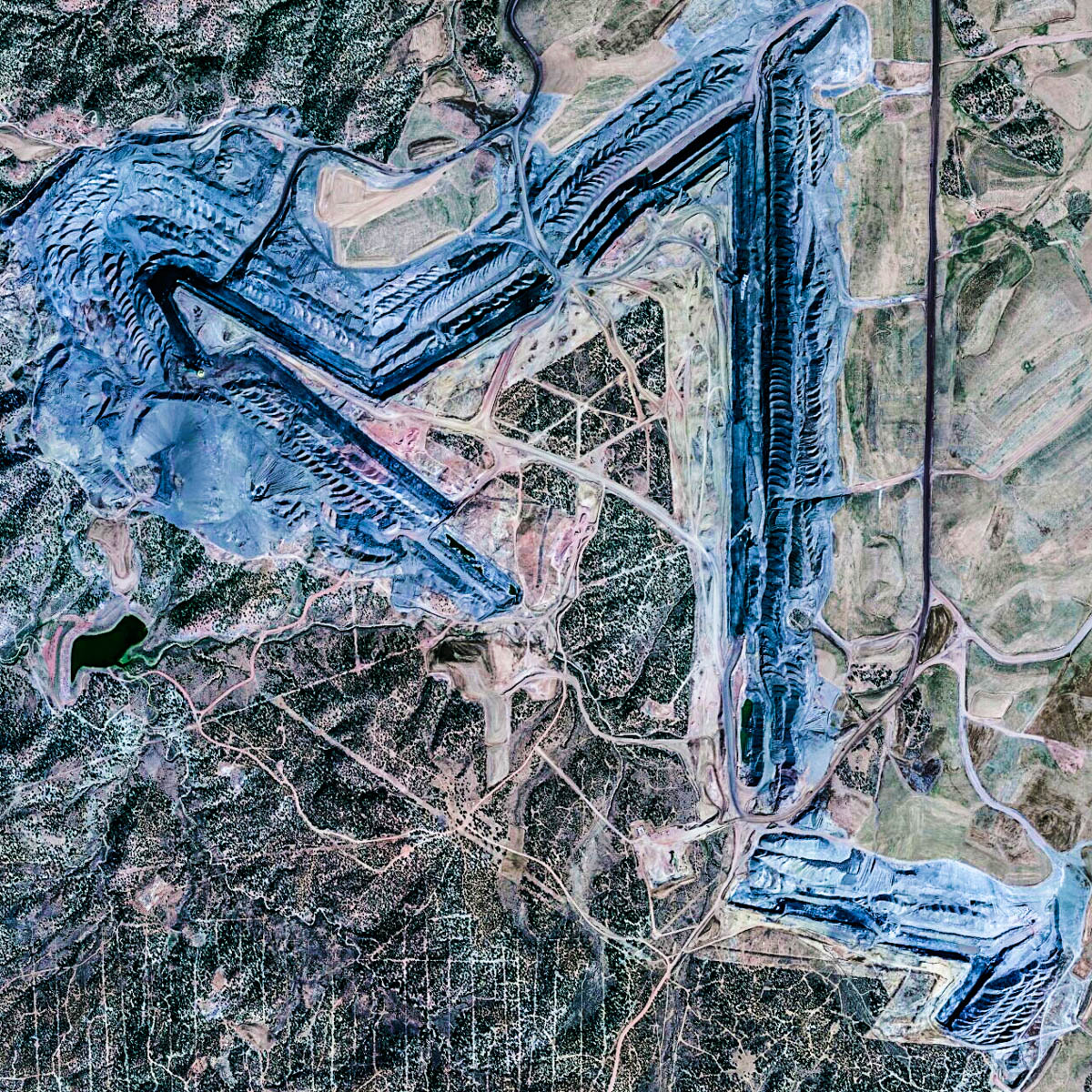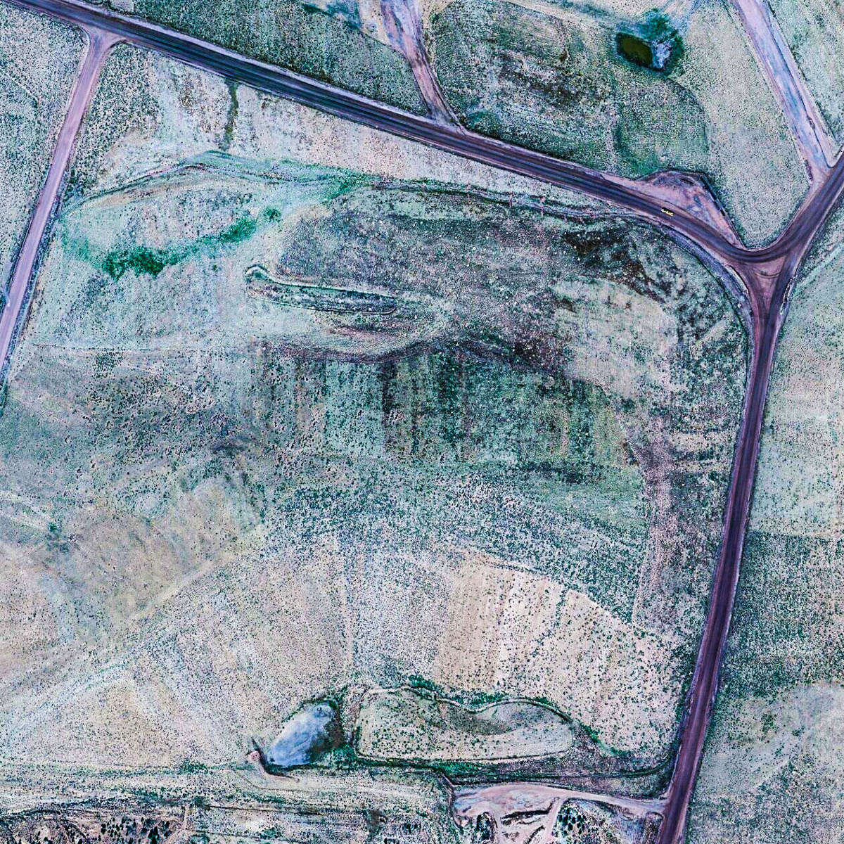Black Heart is a visual parable, told through a mosaic of satellite mapping imagery. It tells the story of the heavy price paid by the Diné and Hopi for the profits of agribusiness and real estate developers in arid central Arizona; a story of how the Bureau of Reclamation conspired with state and national politicians to construct one of the largest public works boondoggles in US history to pump 1.5 million acre feet of water per year, 336 miles and 2,900 vertical feet, from Lake Havasu on the Colorado River to population centers of Phoenix and Tucson. Native Peoples paid the price in environmental degradation, loss of land, and diminished health and diminished wellbeing.