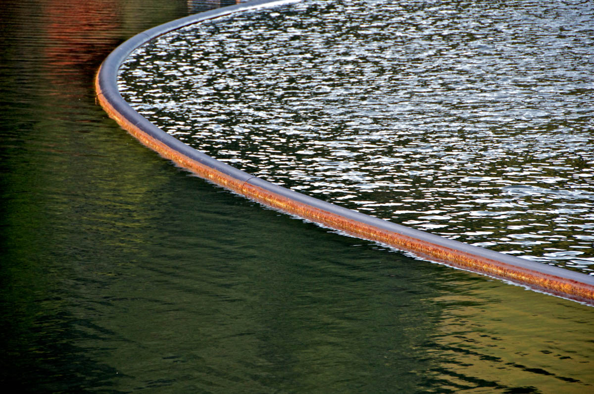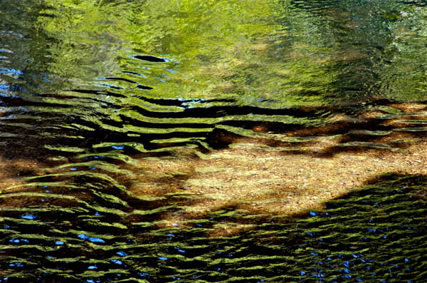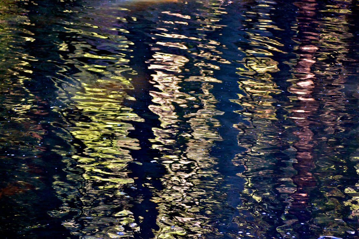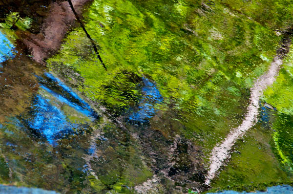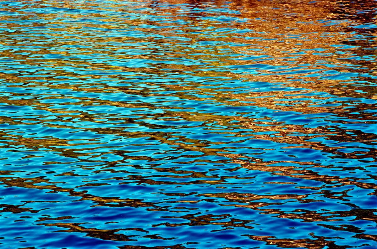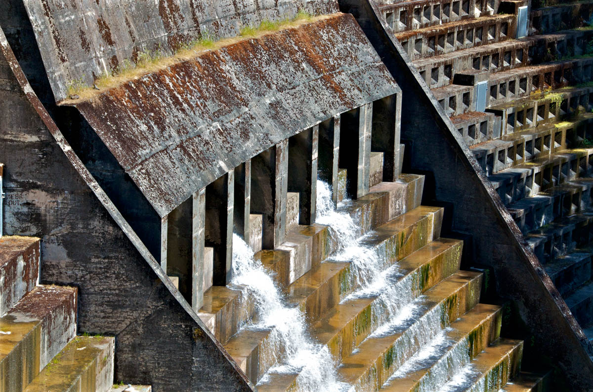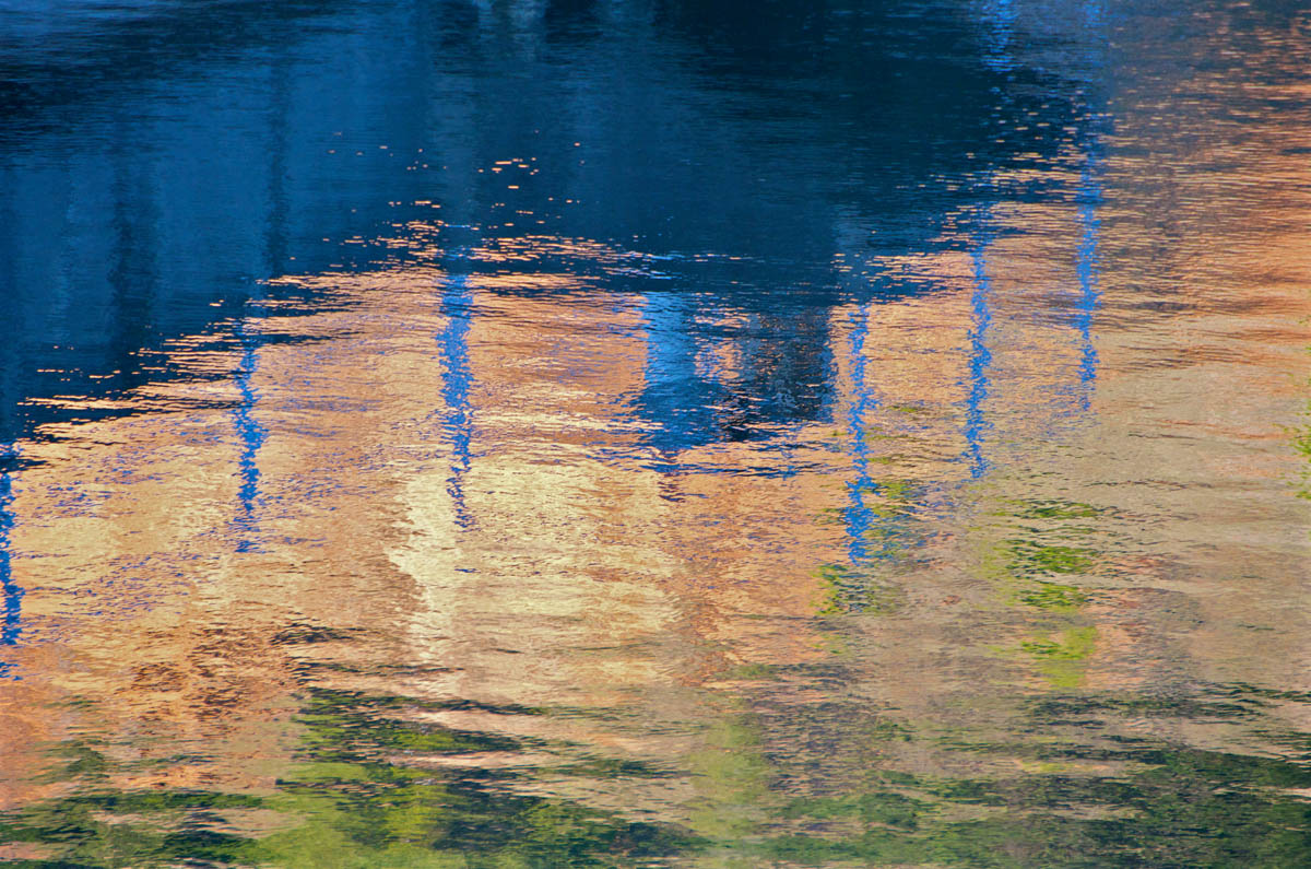 The story is told through photographic watercolor prints with imagery of the surface of the water -refracting and reflecting its surroundings, and of the human-constructions that alter flow of water, and the landscape, to meet human needs.