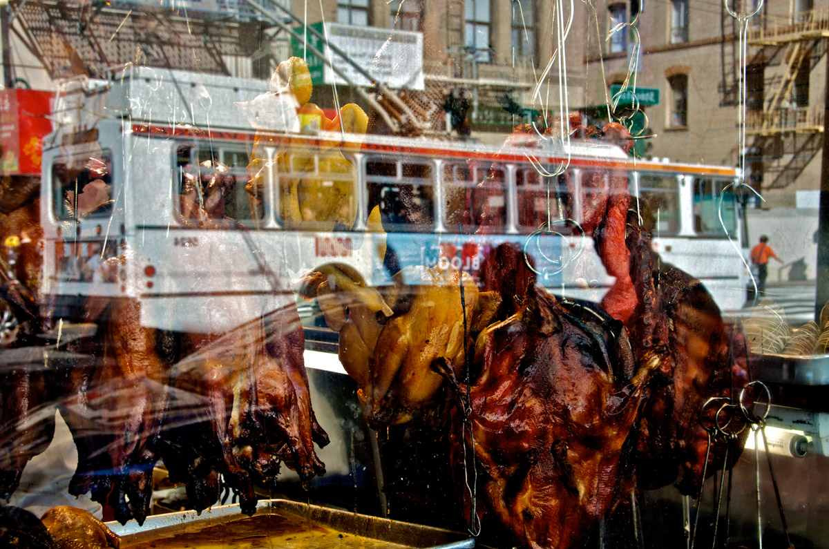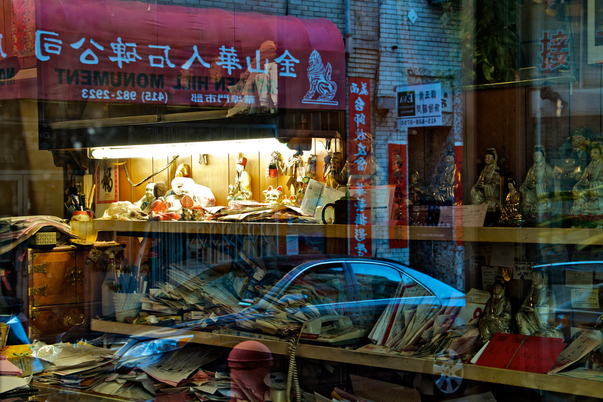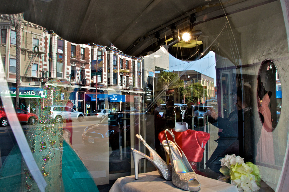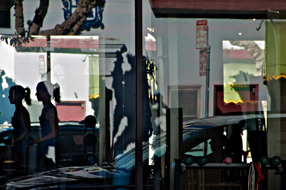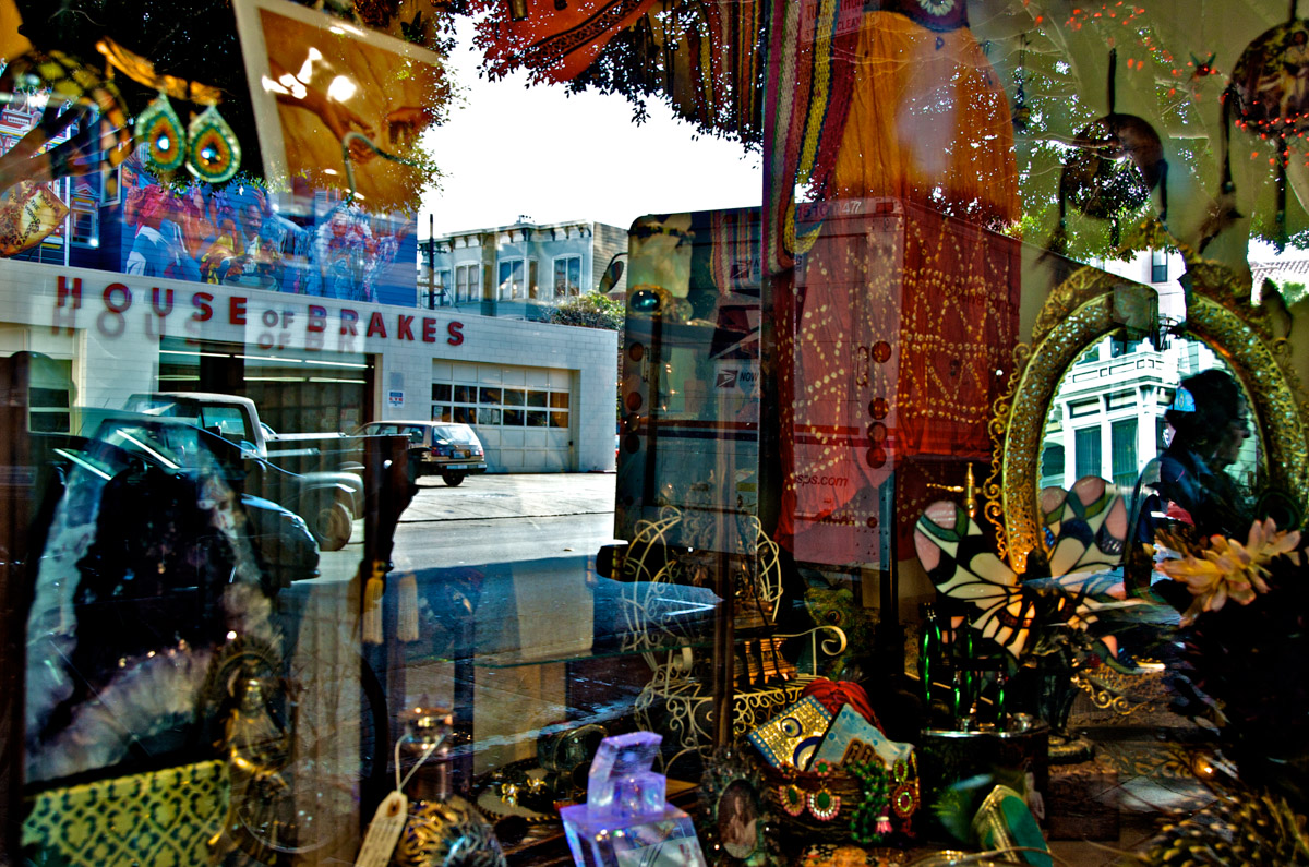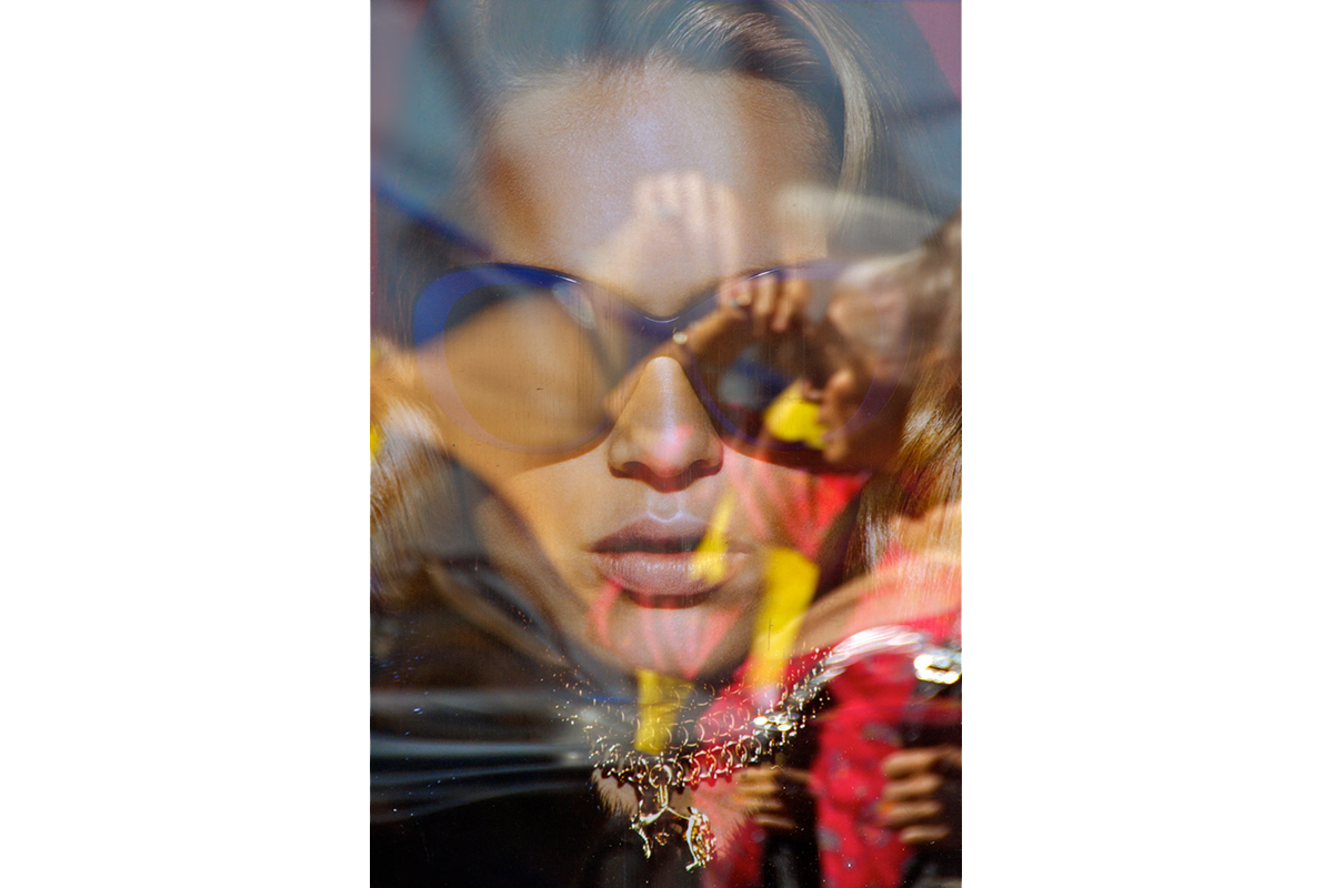 My intent, with these photographs, was to express the kaleidoscopic experience of the urban environment, and the many diverse facets of this unique American city, at this point in its history. I use a technique that I call windowpane which provides an ideal medium of expression for this subject, using the reflection/refraction of window glass to create spatially and semiotically rich photographic images, captured spontaneously and serendipitously in the tradition of the flaneur.