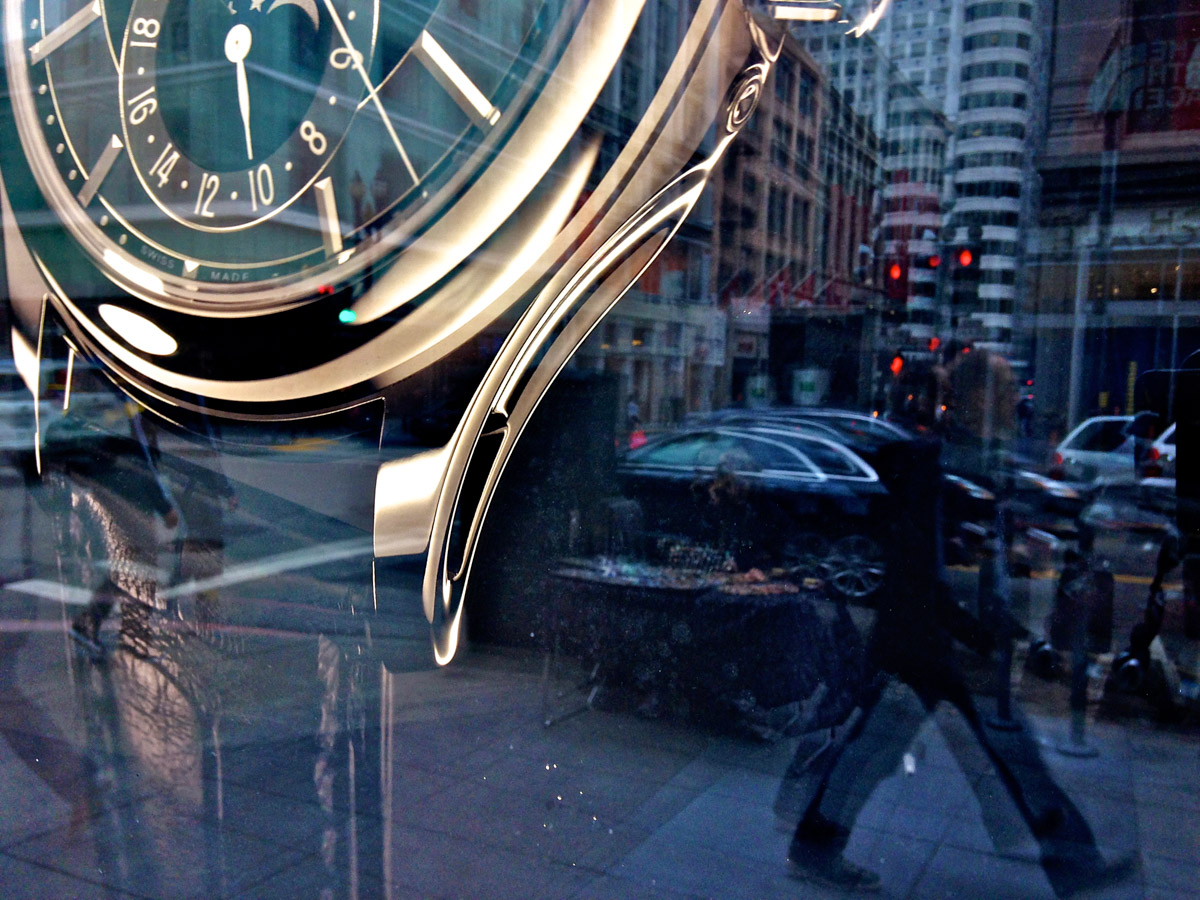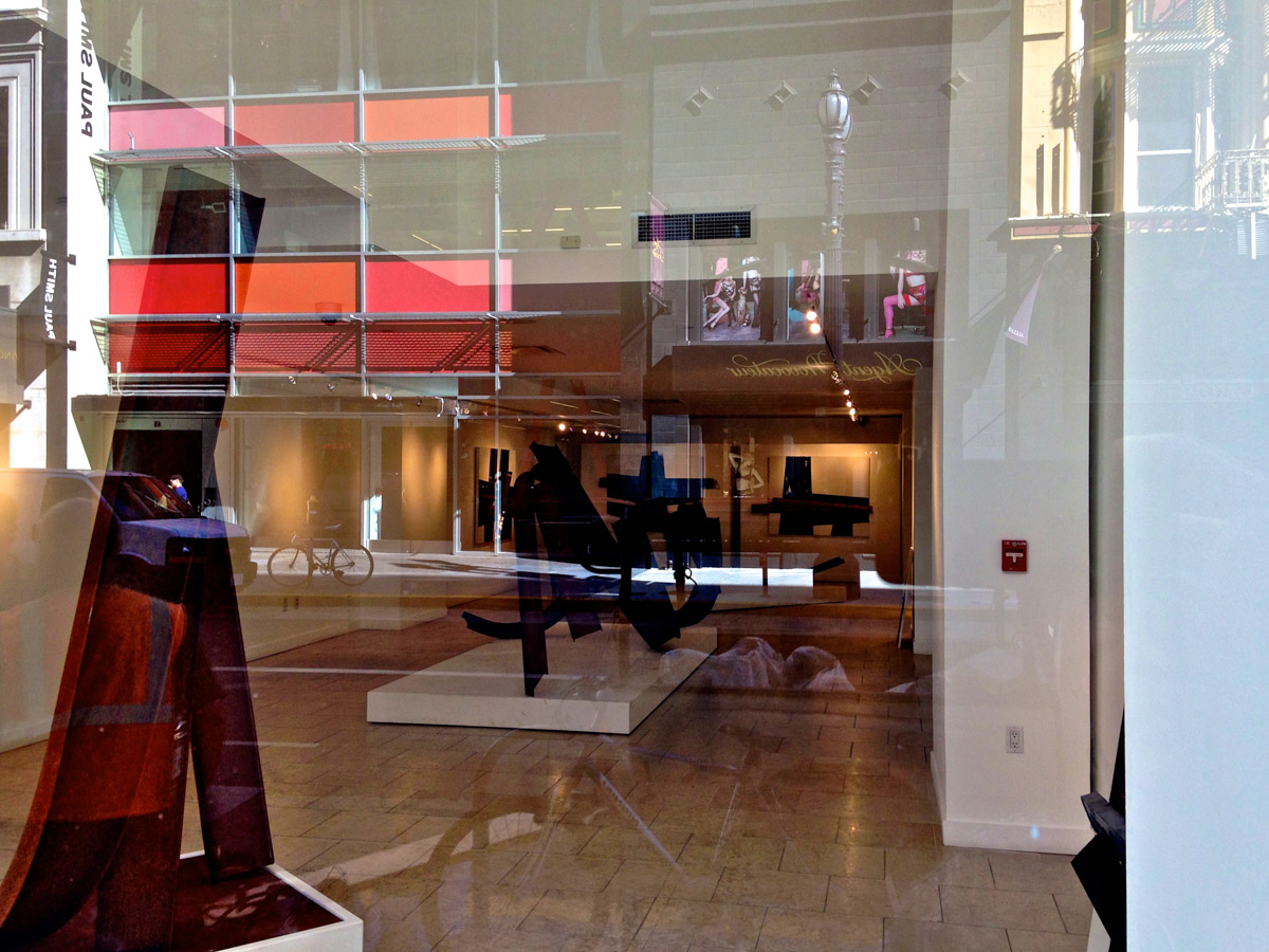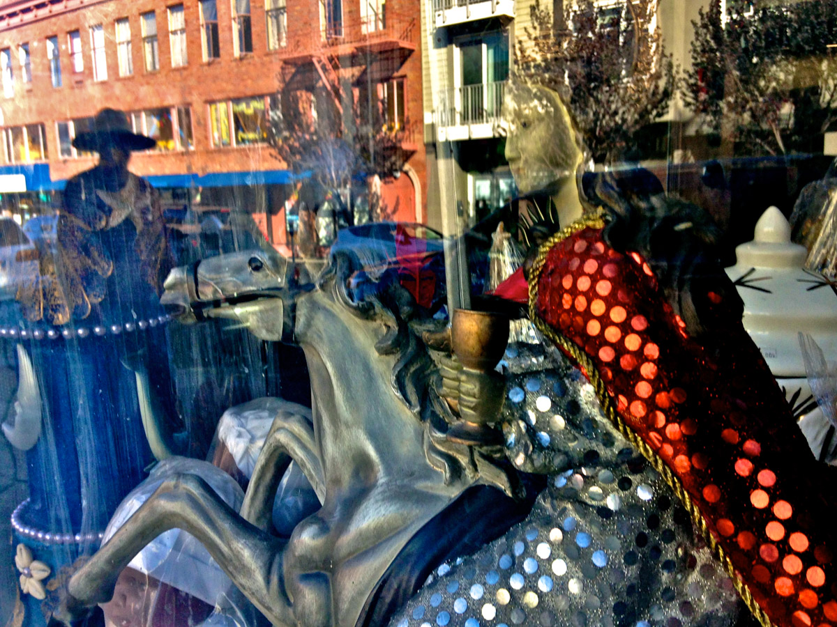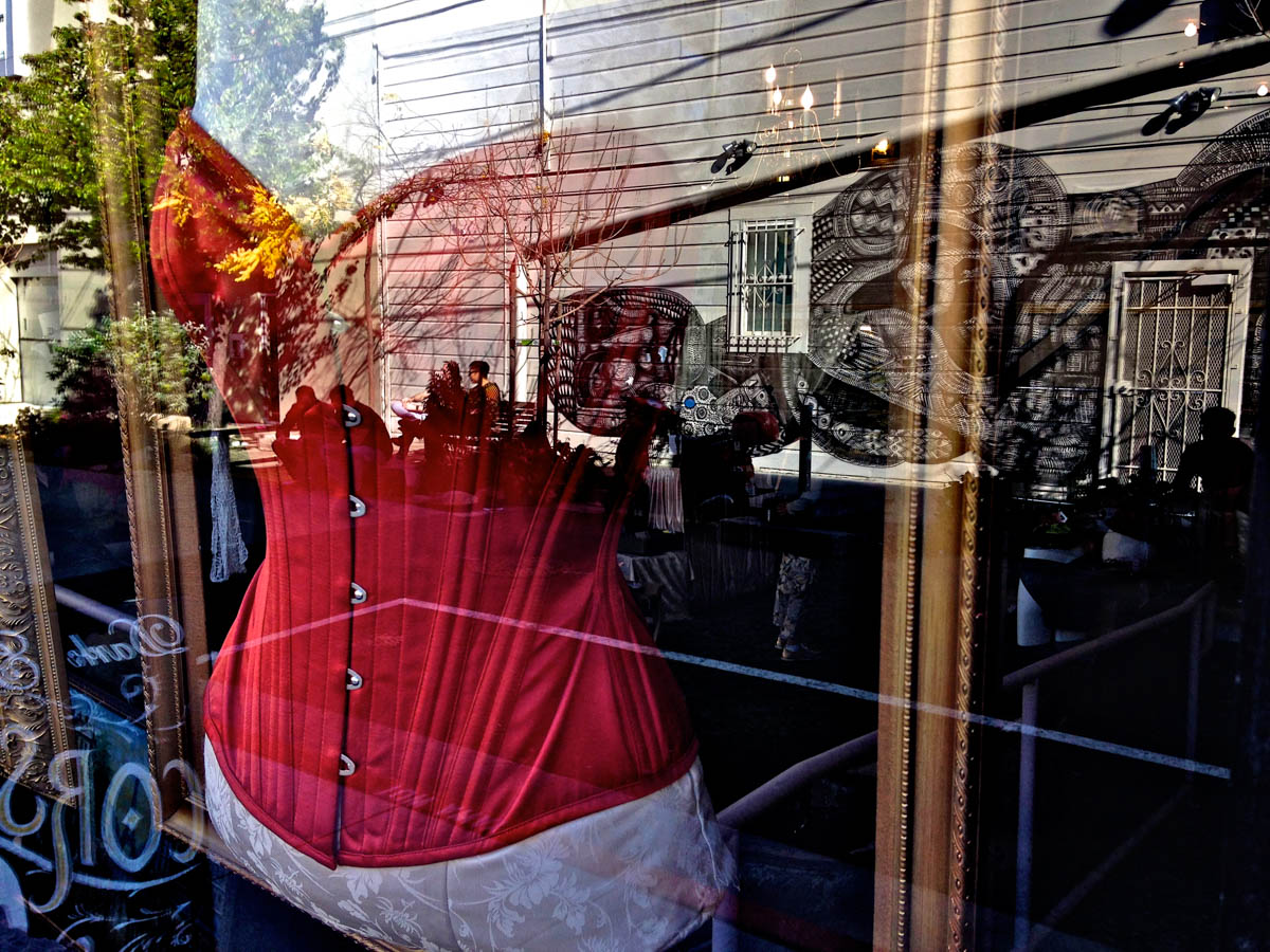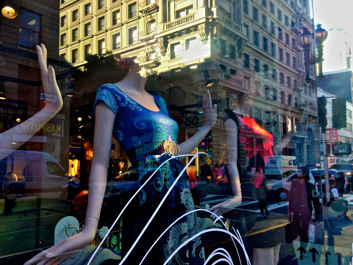 My intent, with these photographs, was to express the kaleidoscopic experience of the urban environment, and the many diverse facets of this unique American city, at this point in its history. I use a technique that I call windowpane which provides an ideal medium of expression for this subject, using the reflection/refraction of window glass to create spatially and semiotically rich photographic images, captured spontaneously and serendipitously in the tradition of the flaneur.