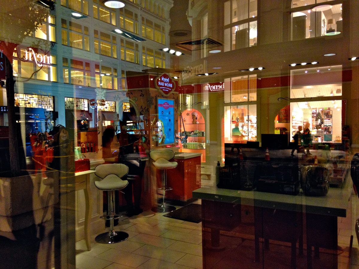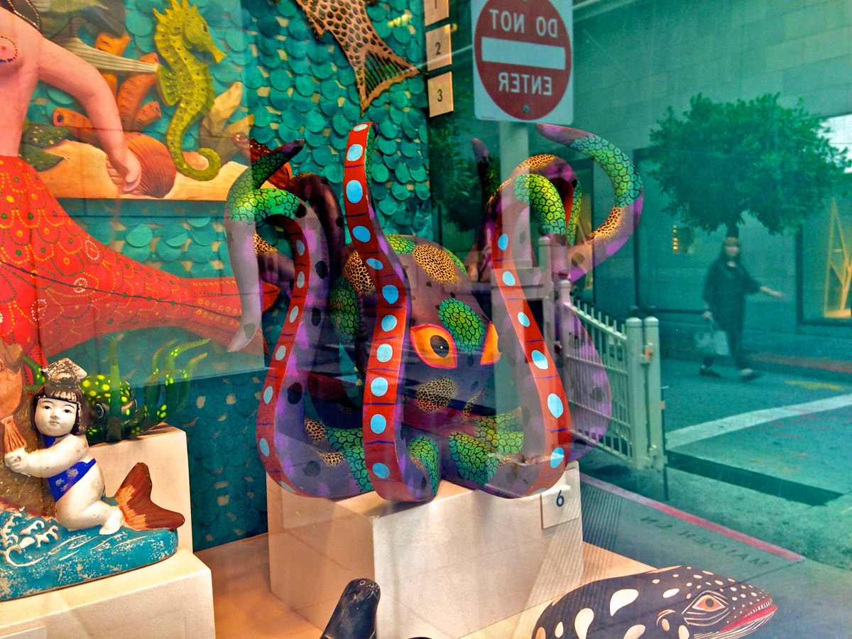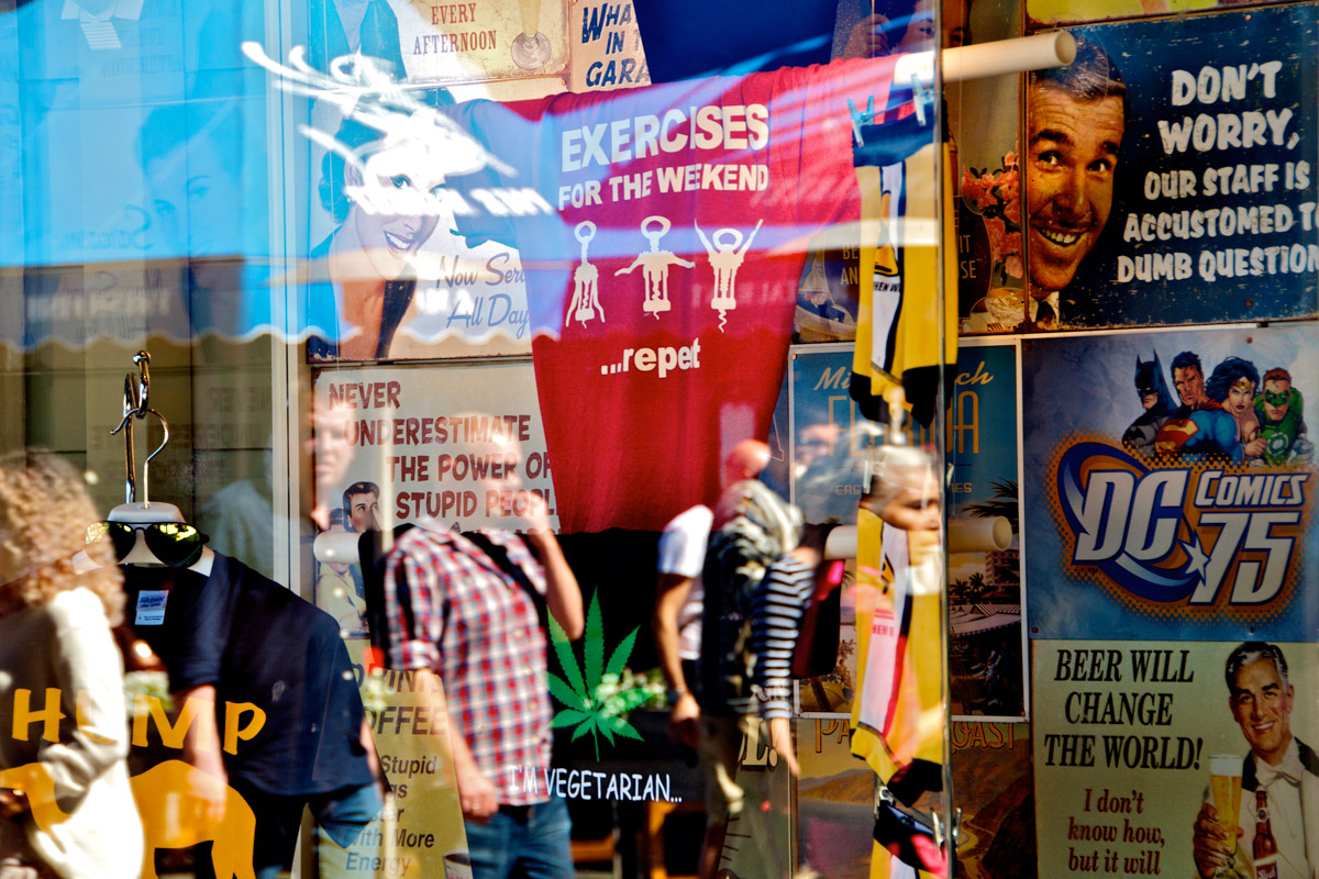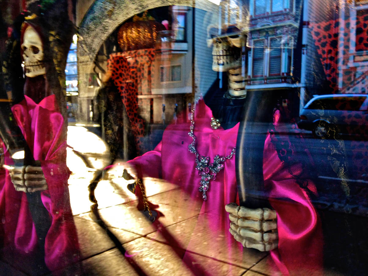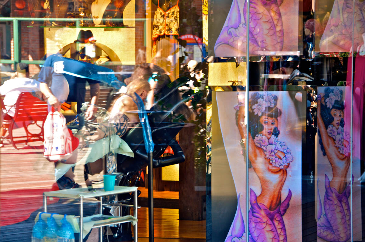 My intent, with these photographs, was to express the kaleidoscopic experience of the urban environment, and the many diverse facets of this unique American city, at this point in its history. I use a technique that I call windowpane which provides an ideal medium of expression for this subject, using the reflection/refraction of window glass to create spatially and semiotically rich photographic images, captured spontaneously and serendipitously in the tradition of the flaneur.